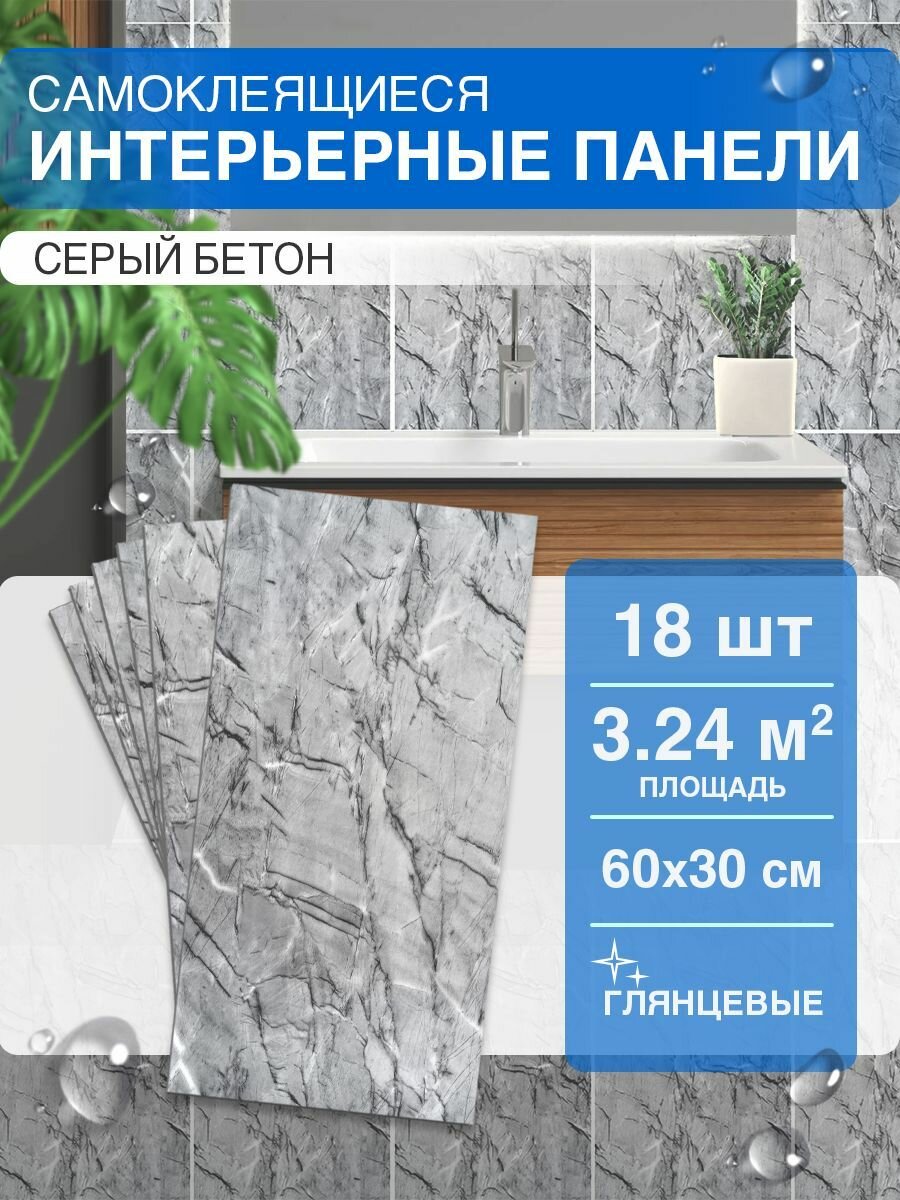 Купить Самоклеящиеся панели ПВХ. Плитка для стен. Серый бетон 18 шт