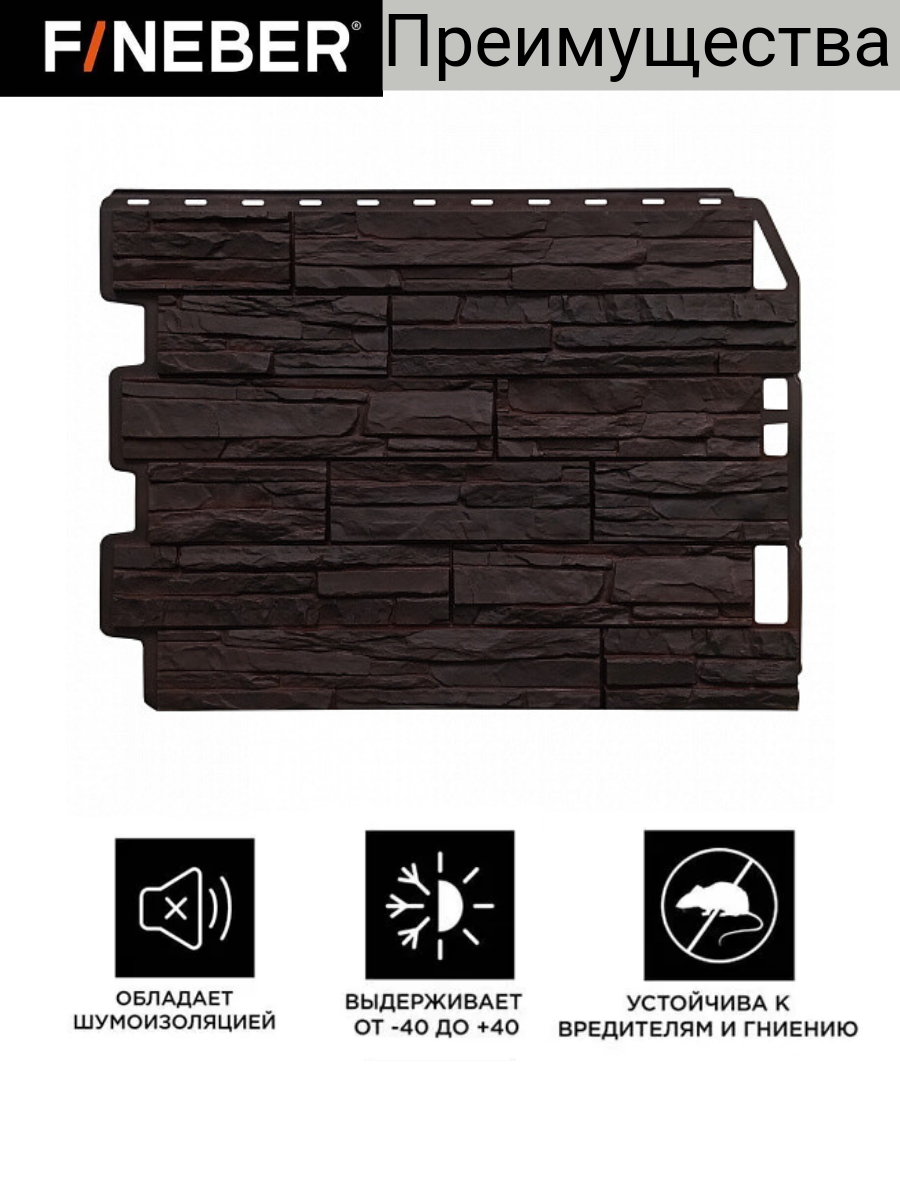 Фасадная панель FINEBER Скол, цвет темно-коричневый, 10 шт.