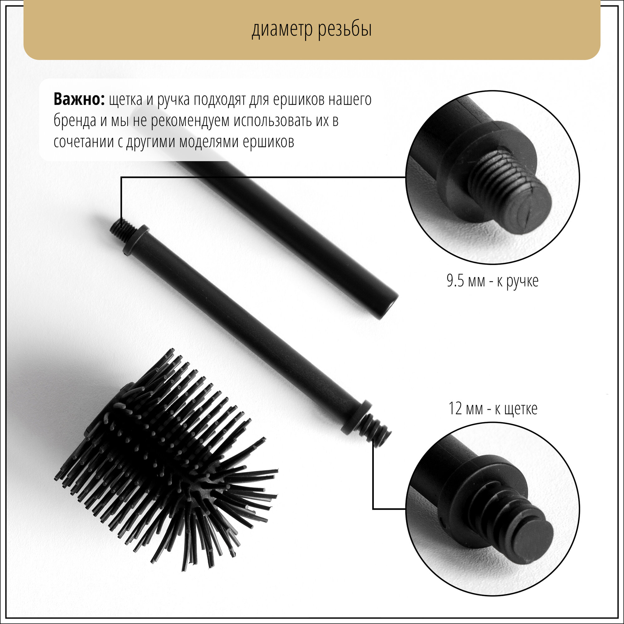 Сменная насадка (щетка) 8 см с ручкой для ёршика для унитаза, черная, 1 шт.