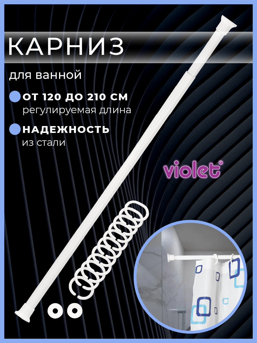 Купить Violet Карниз для занавески в ванную комнату раздвижной 210 см в комплекте с кольцами (белый) 211000 .