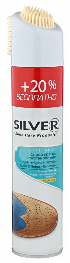 SILVER Спрей-восстановитель для нубука и замши 3в1 с каучуковой щёткой натуральный, 300мл