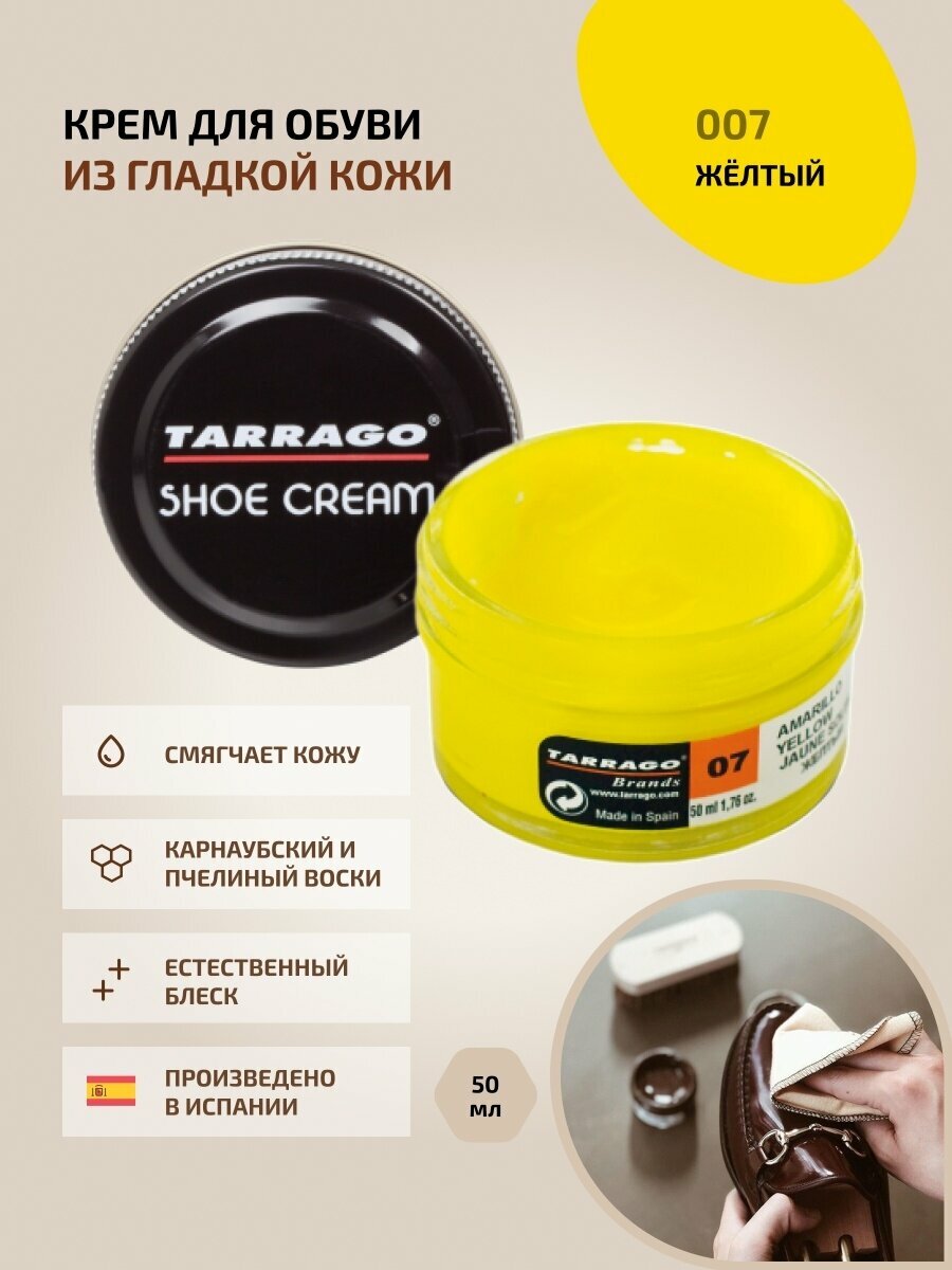 Крем для обуви из гладкой кожи Tarrago SHOE Cream 50 мл, цвет 007 желтый интересное: