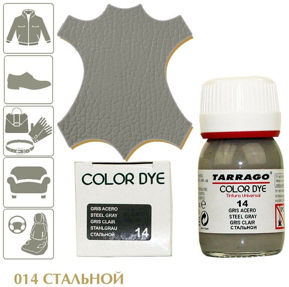 Стойкий краситель для всех видов натуральных и синтетических гладких кож Tarrago COLOR DYE, стекло, 25мл,TDC01/014 (STEEL GRAY) Стальной