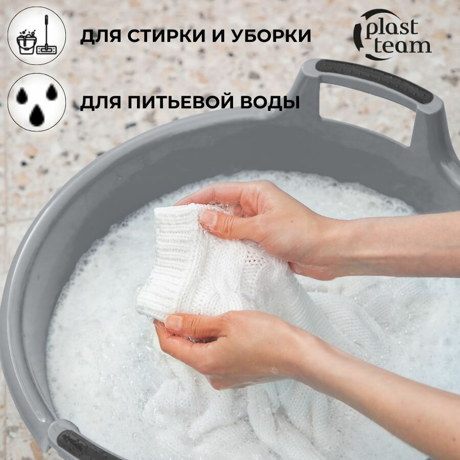 Ведро хозяйственное Plast team AMPARI с ручкой, 10 л, серый шторм