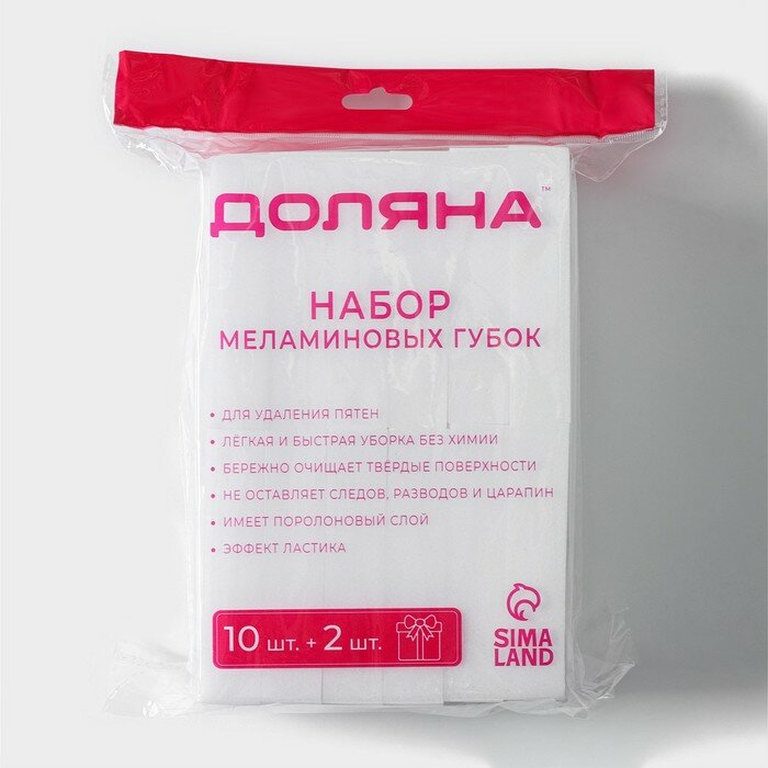 Набор губок меламиновых для удаления пятен Доляна, 10+2 шт, 9×6×2 см