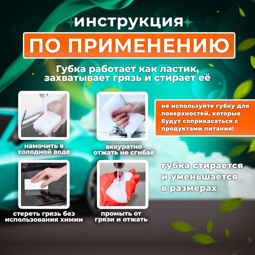 | Дополнительная информация | Важно: со временем губка истирается, пользуйтесь её кончиком или отрежьте часть и произведите чистку ею; не используйте губку для чистки посуды; при чистке эмалированных или лаковых поверхностей проведите небольшой тест на малозаметном участке. |