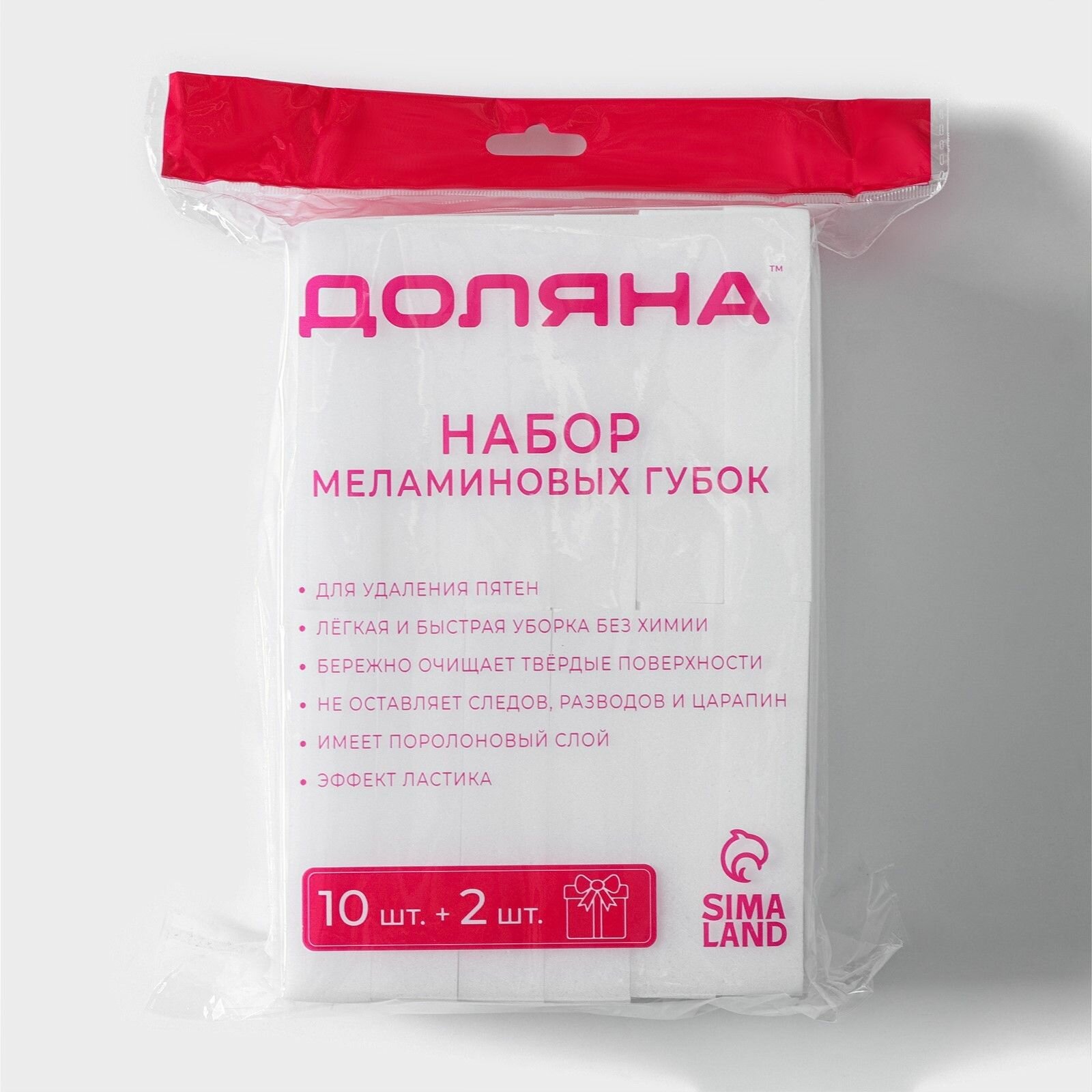 Губки меламиновые набор 12 шт Доляна для удаления пятен, для уборки 9х6х2 см