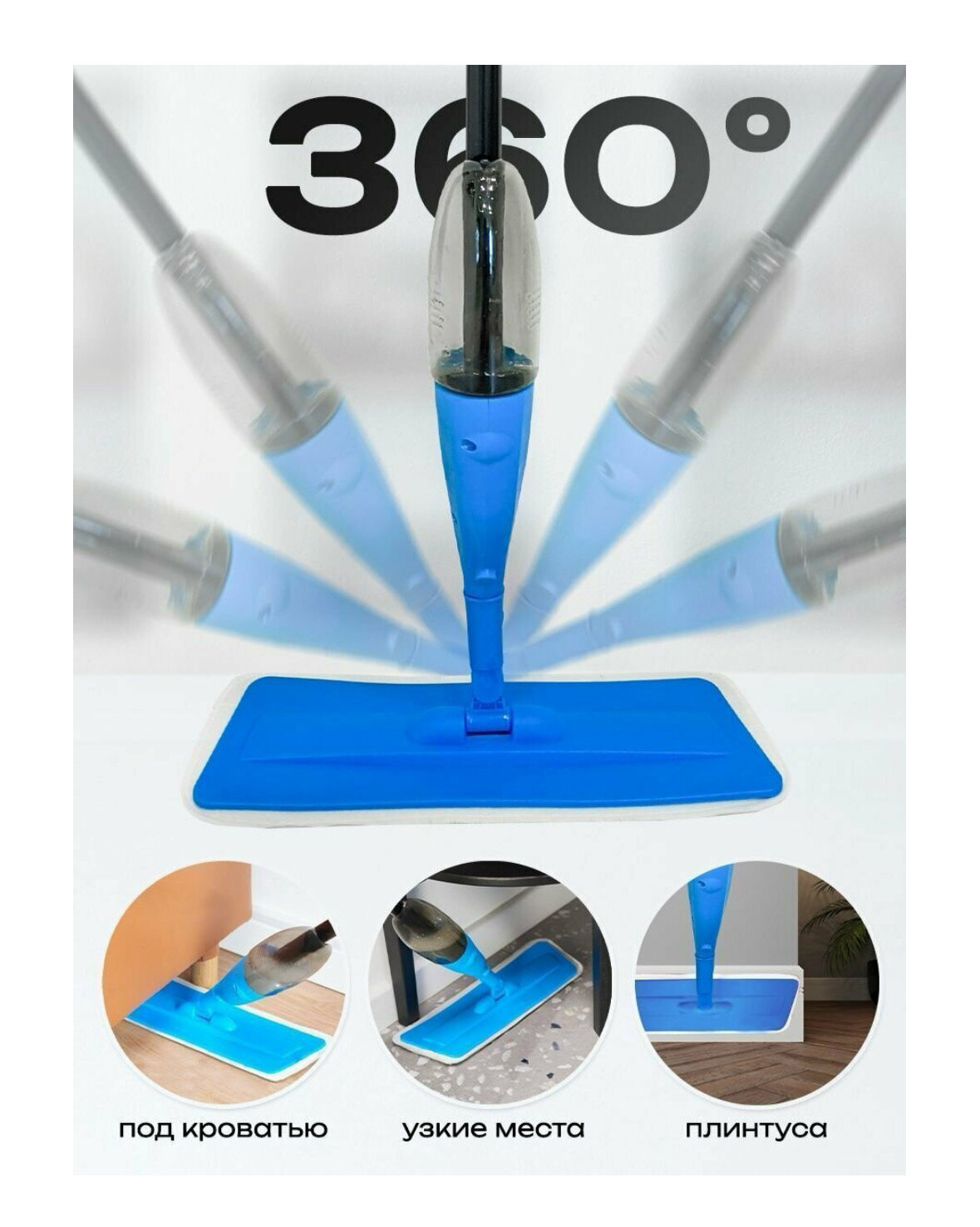 Умная швабра с распылителем, голубая, телескопическая, с насадкой из микрофибры