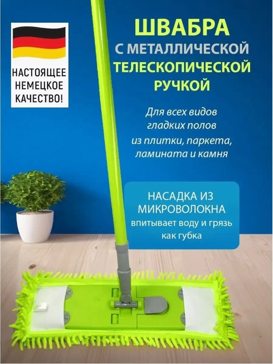 Швабра с микрофиброй с длинным ворсом, флаундер 40х10 см, металлическая телескопическая ручка интересное: