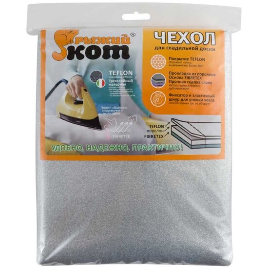 | Дополнительная информация | Чехол для гладильной доски РЫЖИЙ КОТ триплированный 130х46см тефлон FIBRETEX |