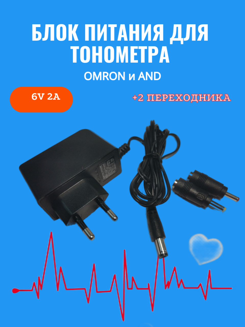 Блок питания для тонометра OMRON и AND, 6V 2A + в комплекте 2 переходника (4.0*1.7/3.5*1.35), длина шнура 1,2м интересное: