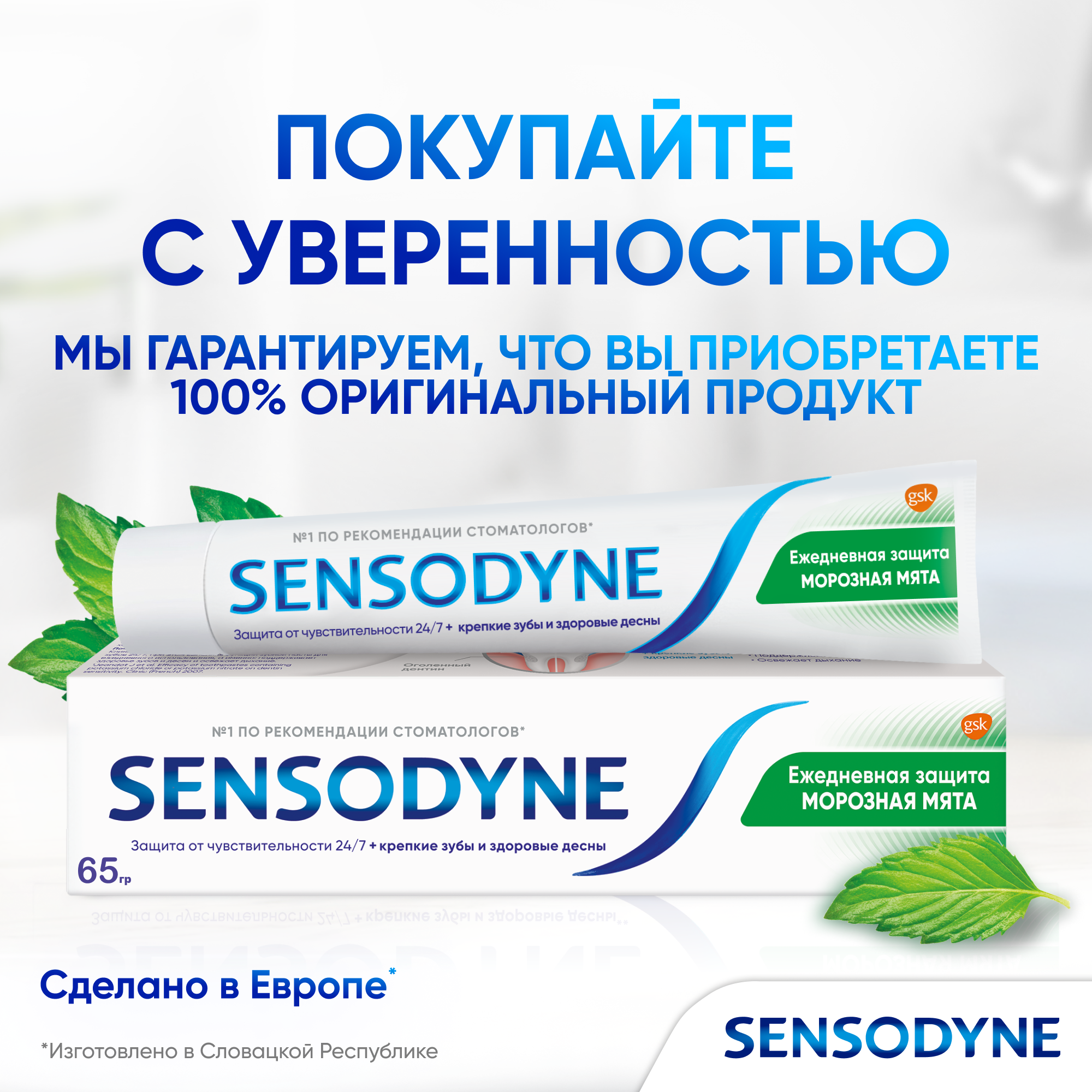 Зубная паста Sensodyne Ежедневная Защита Морозная мята с фтором, для снижения чувствительности зубов и защиты от кариеса, 65г*2шт интересное:
