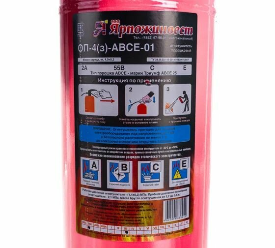 | Дополнительная информация | Огнетушитель порошковый ОП-8 (з) АВСЕ Ярпожинвест |
