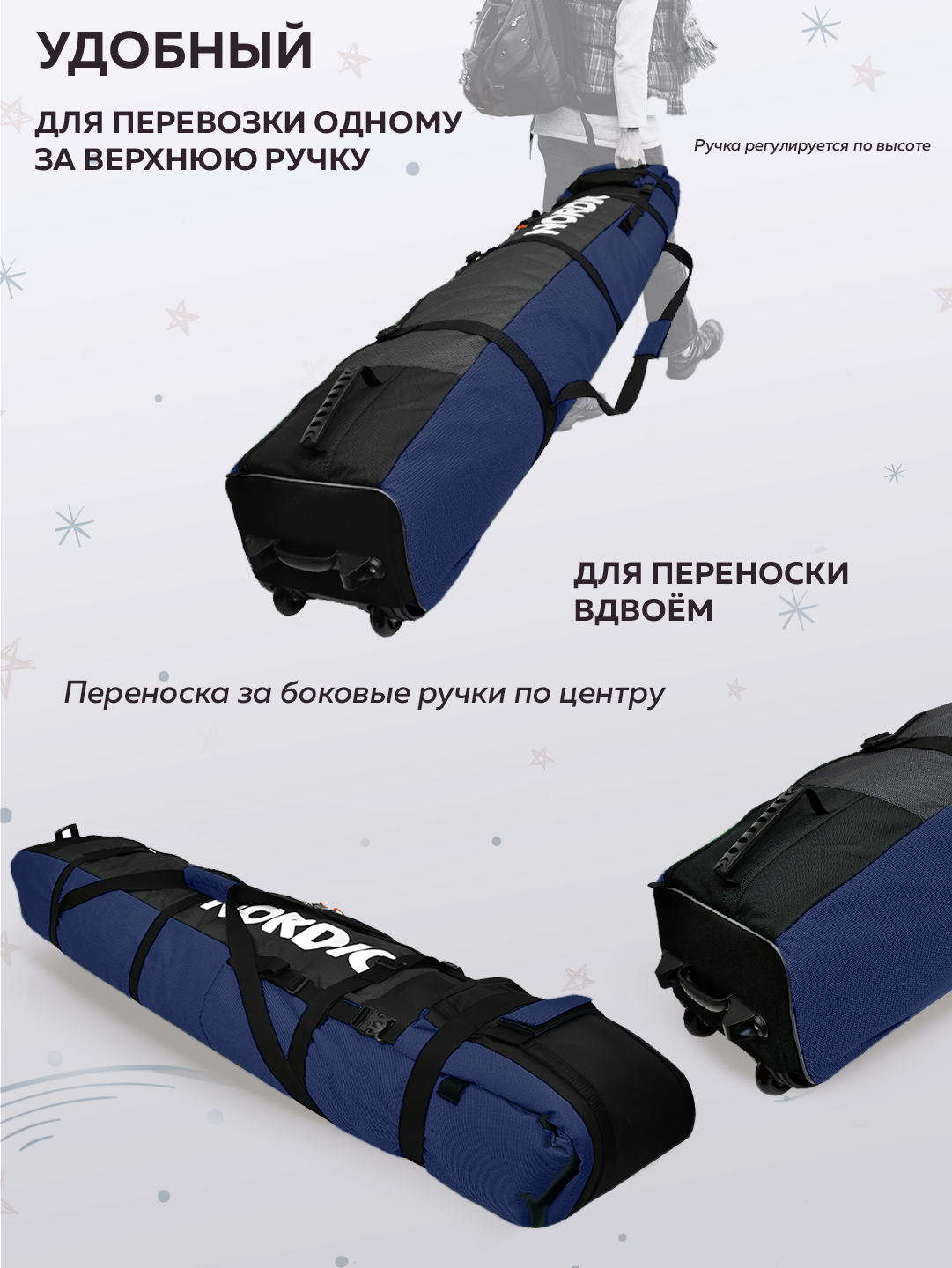 Купить Чехол для лыж и сноубордов на колесиках Nordic 160-210 см темно-синий