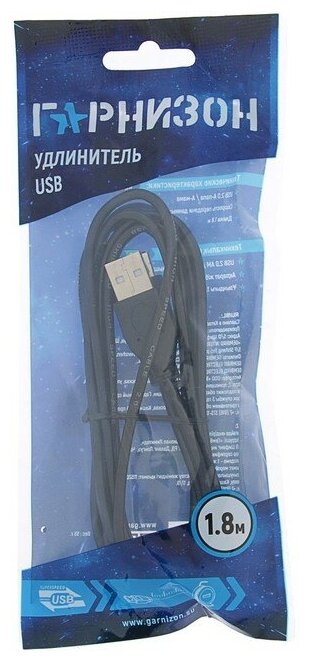 Удлинитель USB2.0 Am-Af Гарнизон GCC-USB2-AMAF-1.8M - кабель 1.8 метра, чёрный