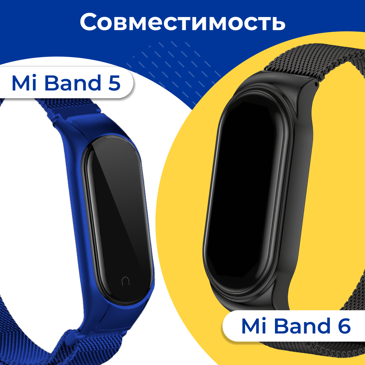 Металлический ремешок для фитнес-трекера Xiaomi Mi Band 5 и 6 / Стальной браслет миланская петля для умных смарт часов Сяоми Ми Бэнд 5 и 6 / Синий