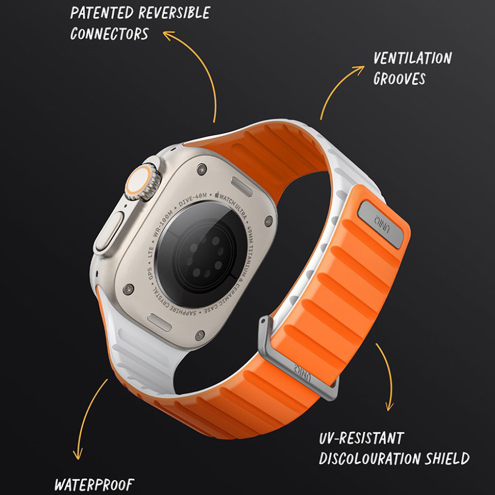 Uniq для Apple Watch 49/45/44/42 mm ремешок Revix EVO reversible Magnetic Amber Orange/White
