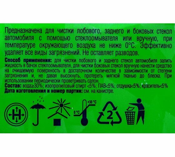 Жидкость для стеклоомывателя Ravenol 07030041, °C