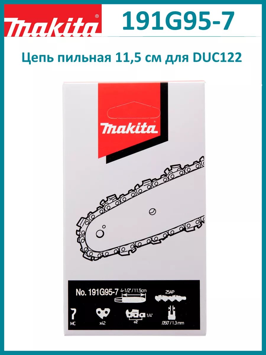 Купить Цепь Makita длина 11,5см/4,5", шаг1/4", паз 1,3мм, звеньев 42, 25AP (191G95-7)