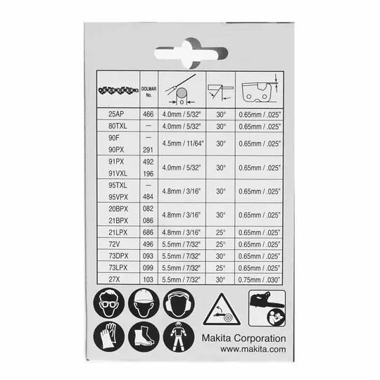 | Дополнительная информация | Цепь Makita 196213-0 16" 3/8" 1.3 мм 56 звен. |