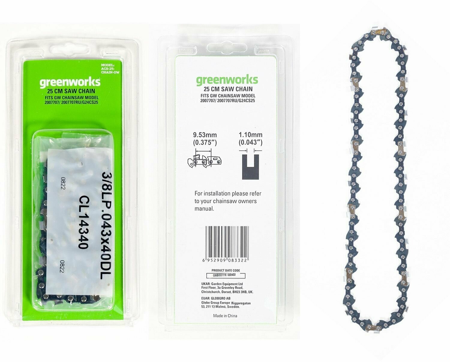 | Совместимость | для цепной пилы Greenworks G24CS25 24V 2007707 |