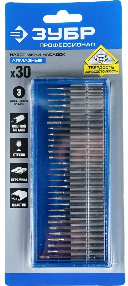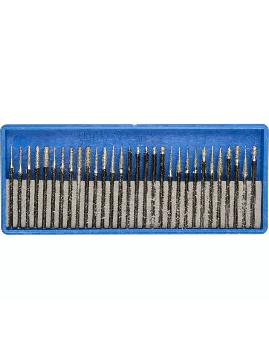 Набор алмазных мини-насадок для гравера ЗУБР 30 шт, хвостовик d 3 мм, Р 150 - 180, 33383-H30