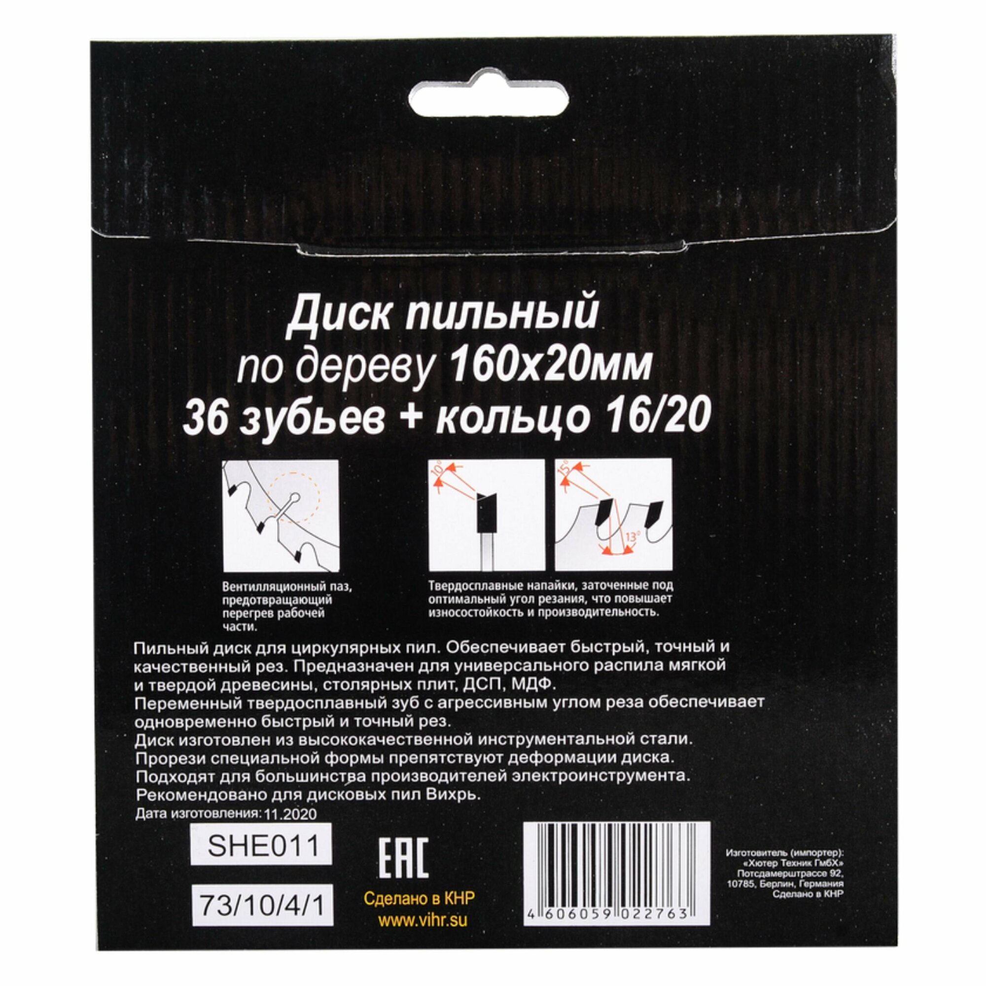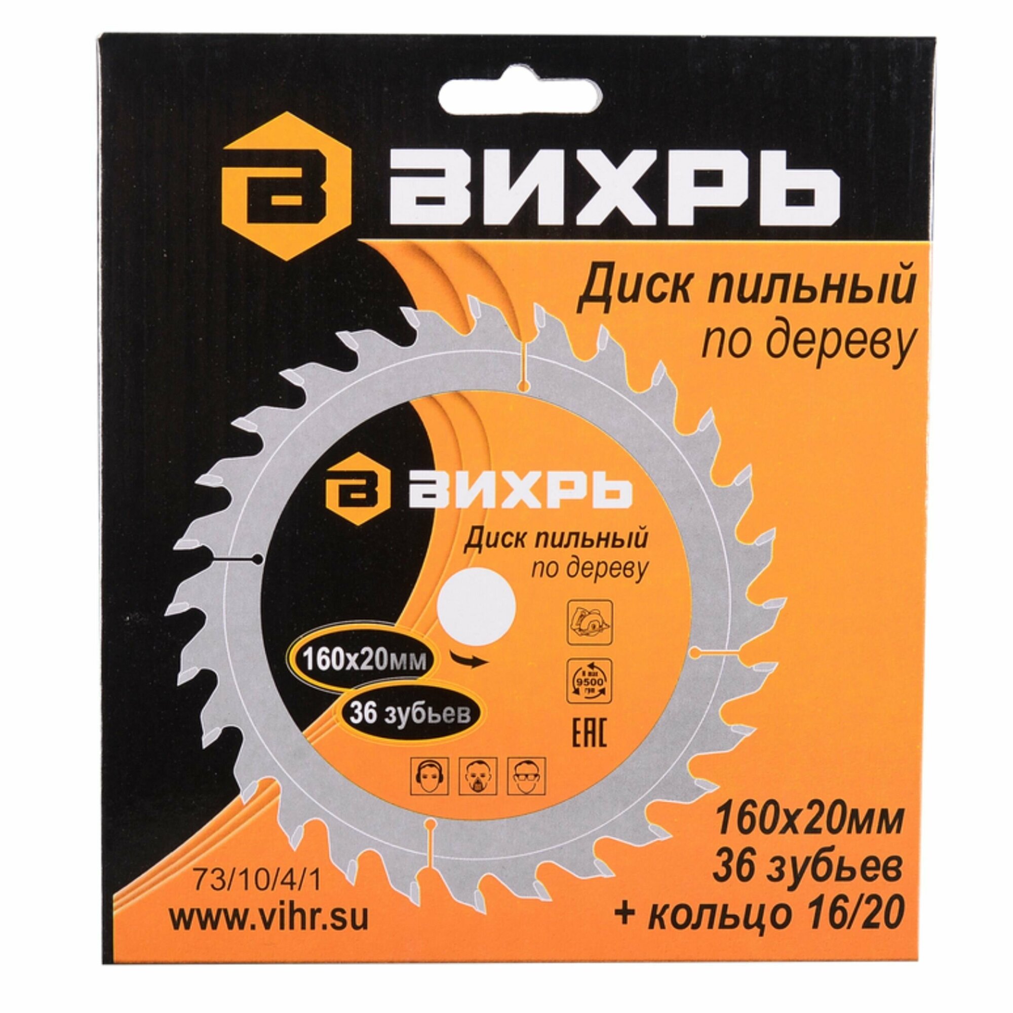 Диск пильный по дереву (160х20/16 мм, 36 зубьев) Вихрь 73/10/4/1