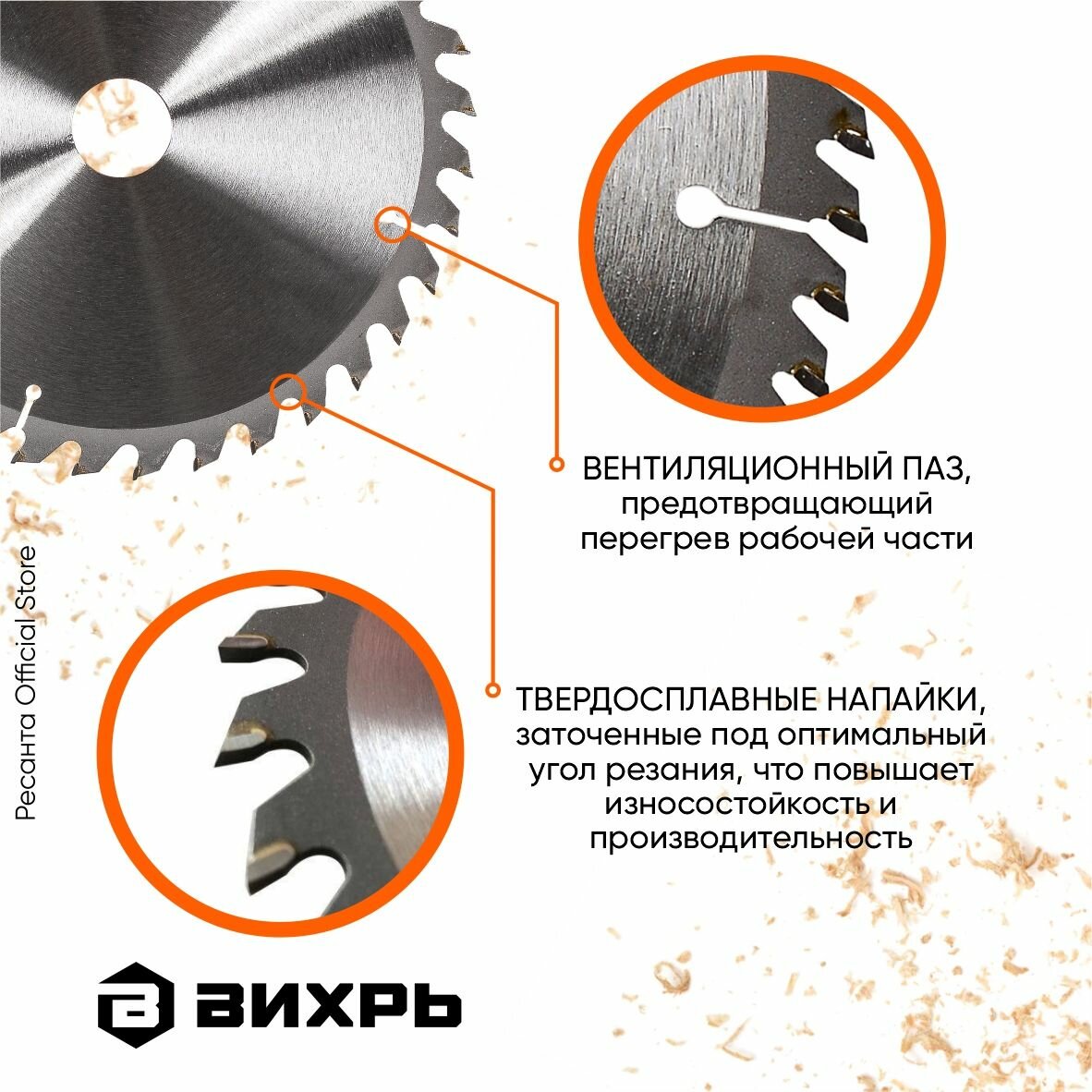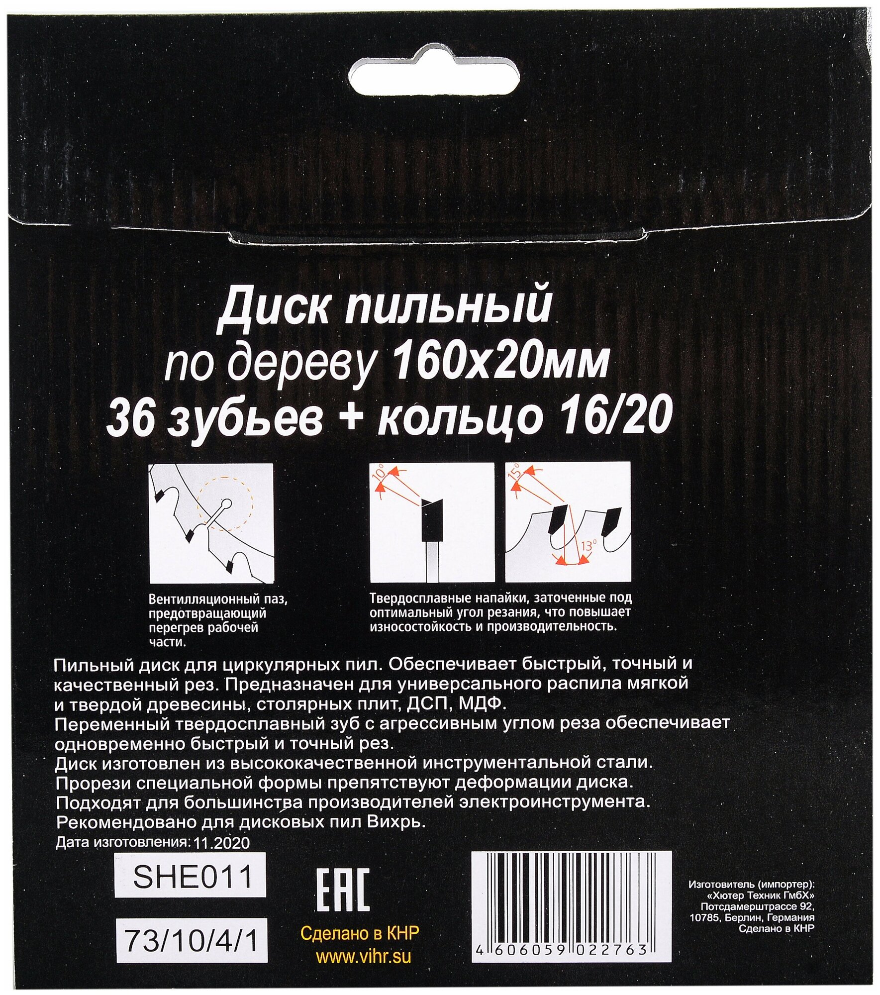 Пильный диск по дереву Вихрь 185х20 мм, 36 зубьев+кольцо 16/20, 73/10/4/3