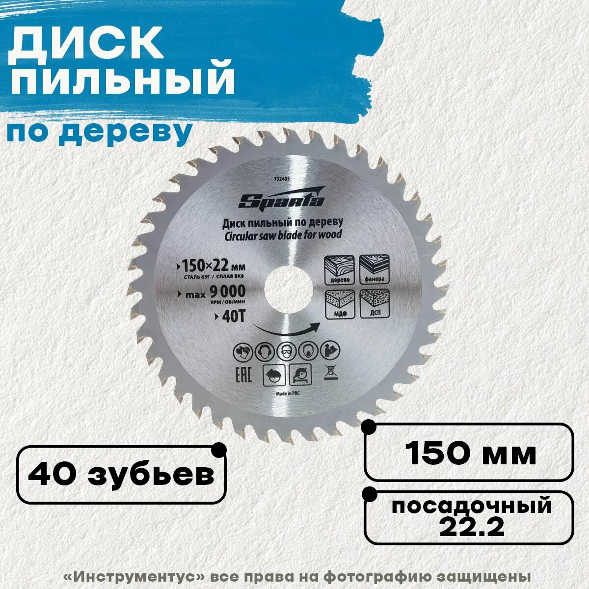 Пильный диск по дереву Sparta 732405, ф150 х 22 мм, 40 зубьев интересное: