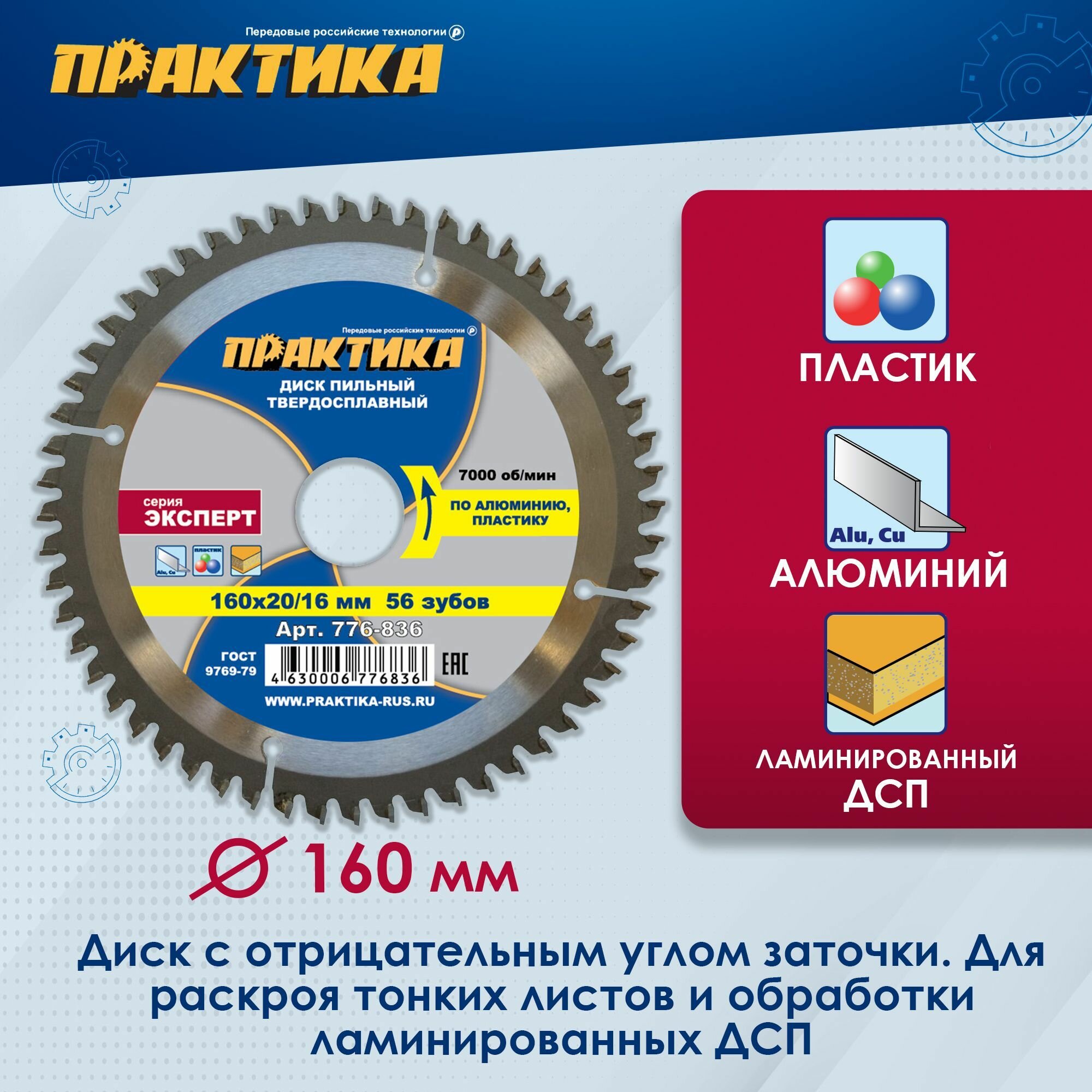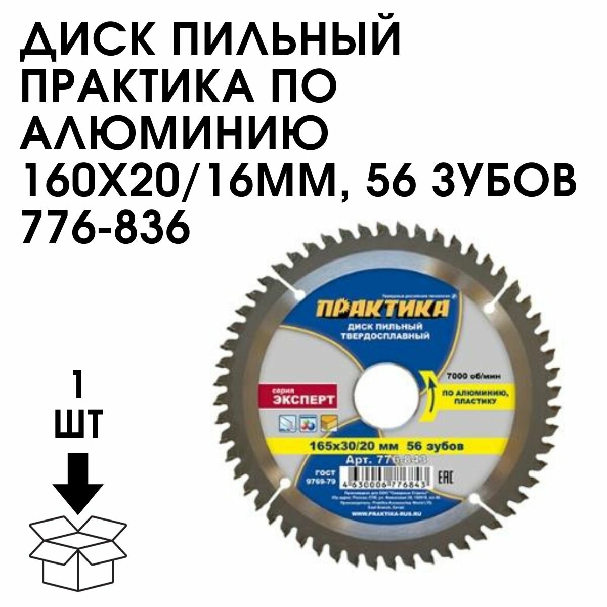 Диск пильный по алюминию (160х20/16 мм, Z56) ПРАКТИКА 776-836