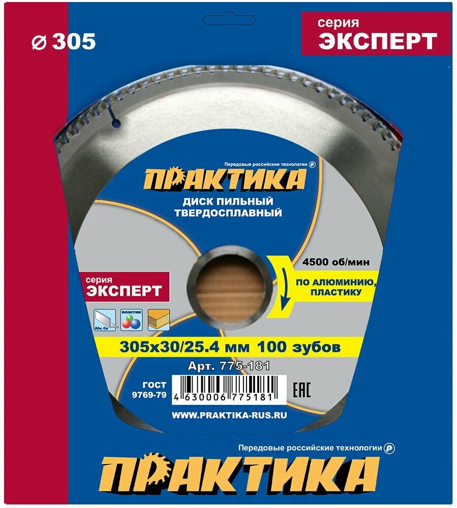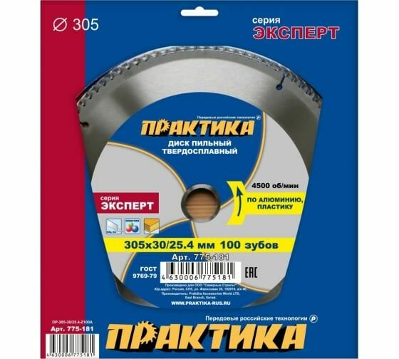 СохранитьДиск пильный твёрдосплавный по алюминию ПРАКТИКА 305 х 30/25,4 мм, 100 зубов интересное: