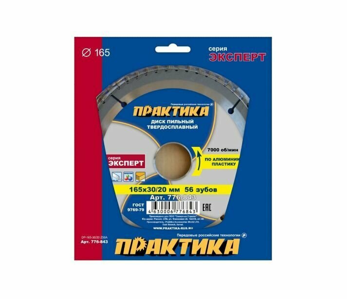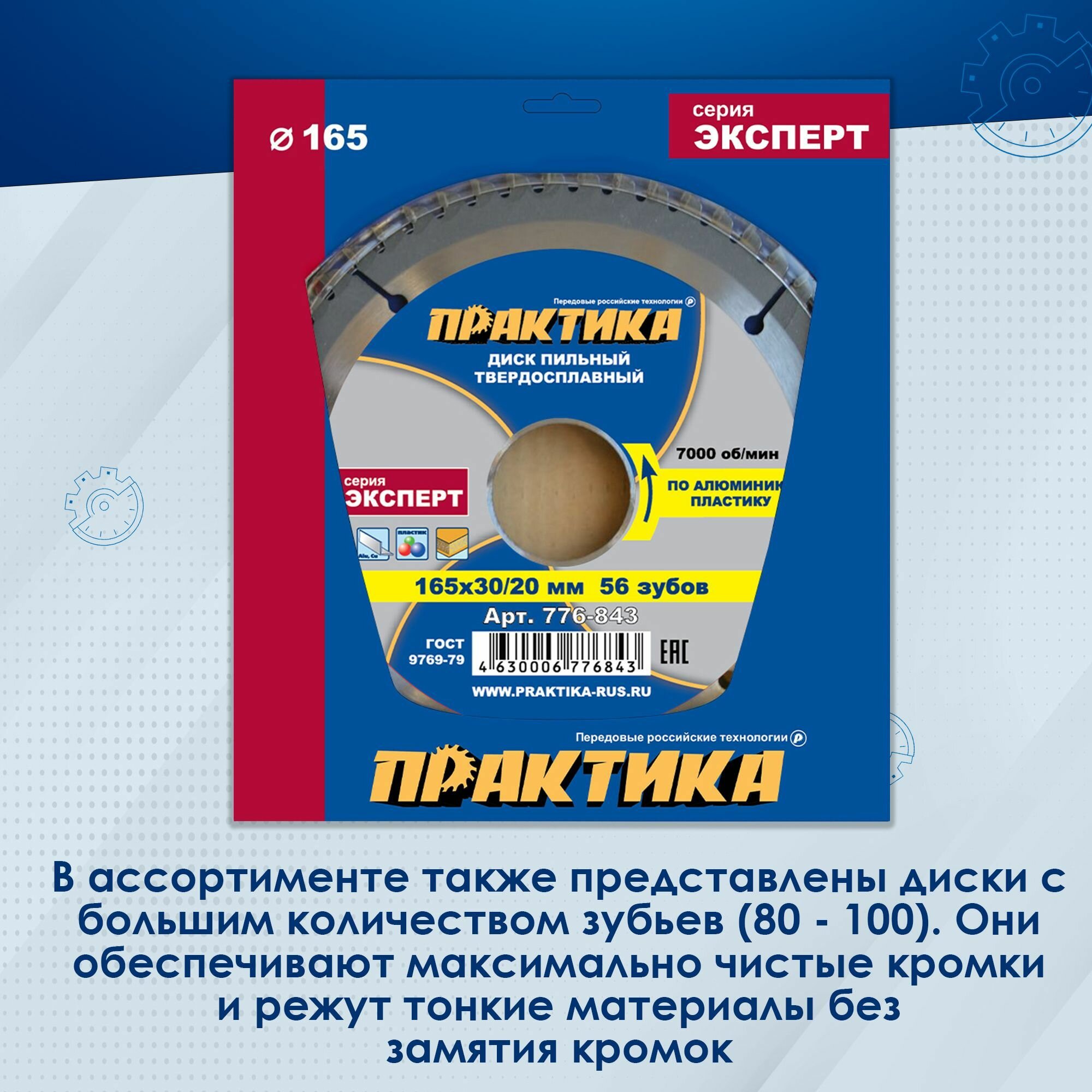 Диск пильный твёрдосплавный по алюминию ПРАКТИКА 165 х 30/20 мм, 56 зубов (165х30/20мм, 56зубов) интересное: