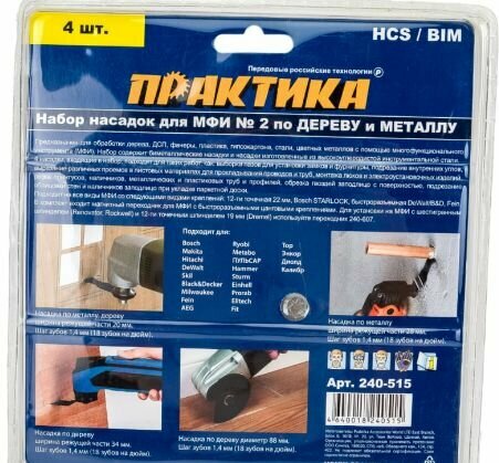 Насадки для МФИ / реноватора ПРАКТИКА набор 4 шт комбинированный №2 в блистере (240-515).