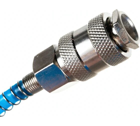 Шланг спиральный POWER TECHNIC 7,5м, PU 5.5х8мм, с быстросъёмными разъемами 1/4" PU08-7,5m