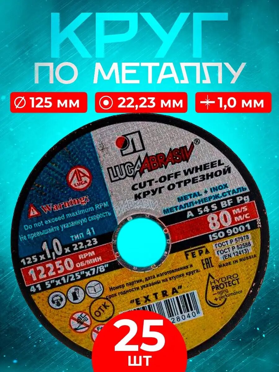 Круг отрезной по металлу Луга, 125 х 1,0 х 22,23 мм 25шт.