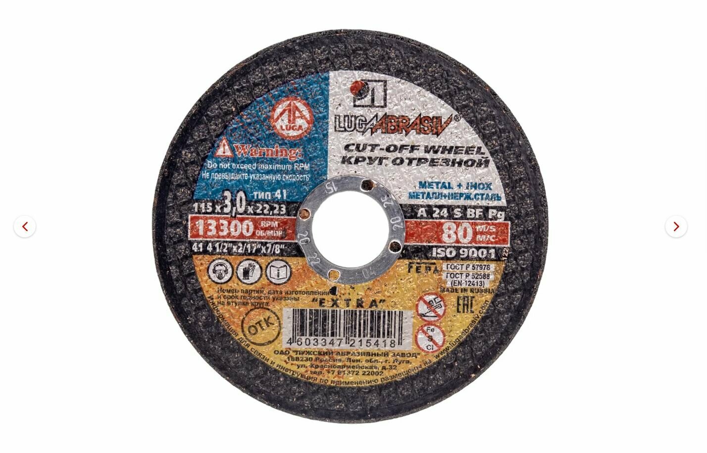 Купить Luga-Abrasiv 115x3x22 А24 металл Диск отрезной 4603347215418