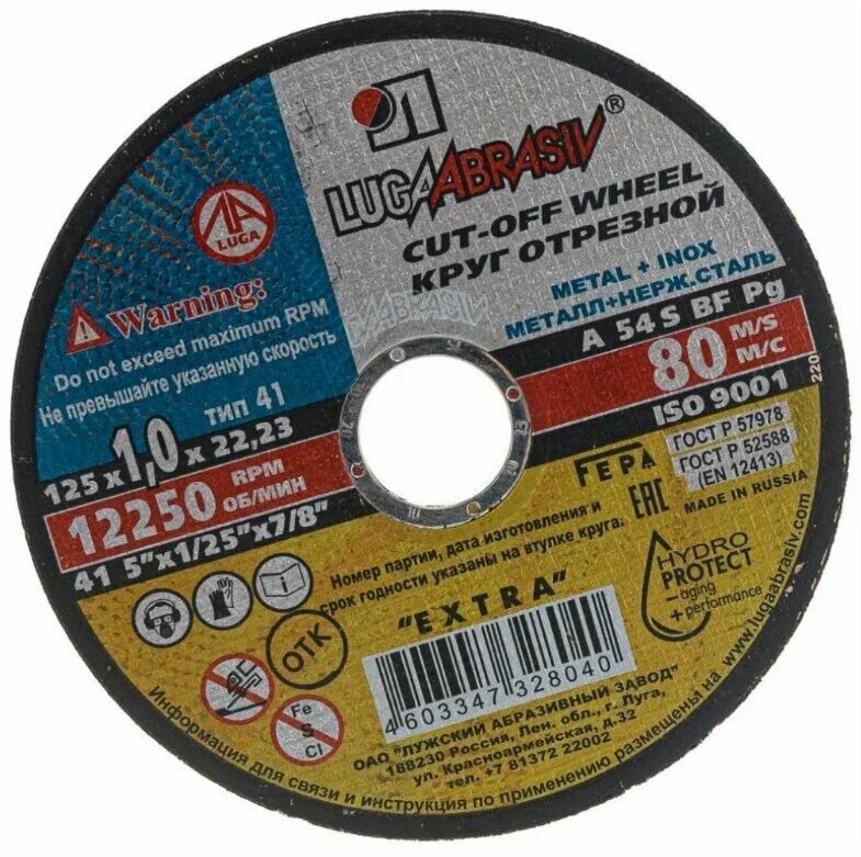 | Дополнительная информация | Круг отрезнойКруг отрезной по металлу 125х22х1 мм |