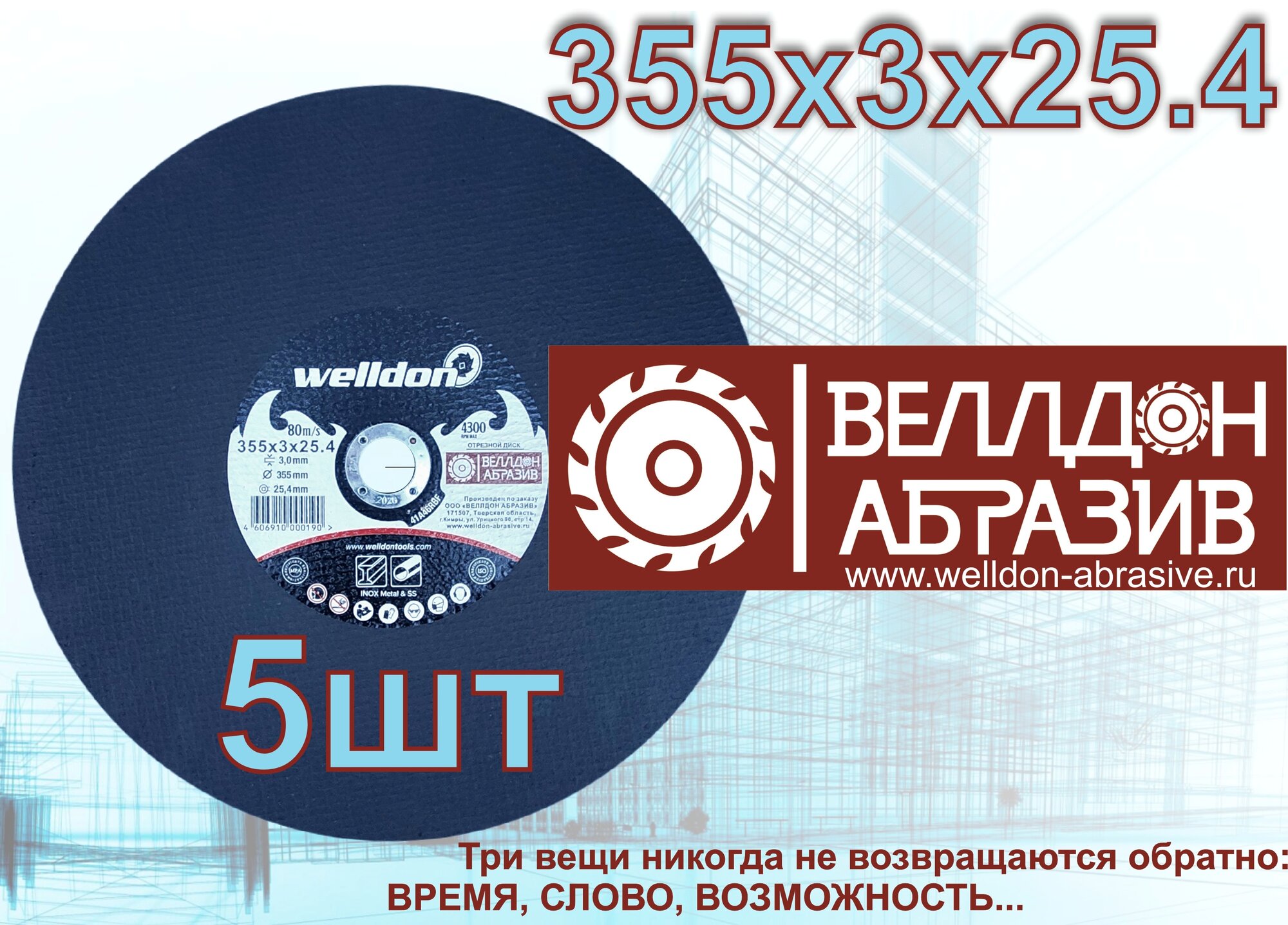 Купить Диск отрезной по металлу и нержавейки 355х3х25.4 (5шт) WELLDON
