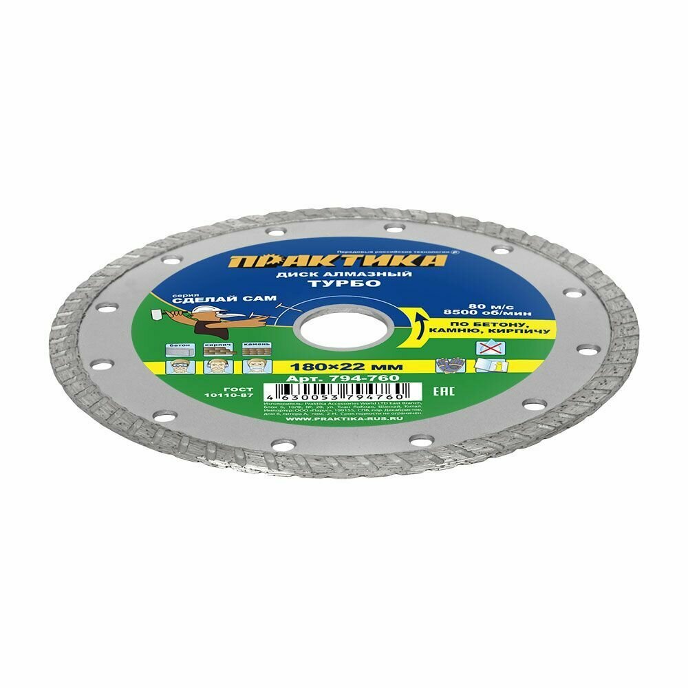 Диск алмазный турбированный ПРАКТИКА "Сделай Сам" 180 х 22 мм (1 шт.)