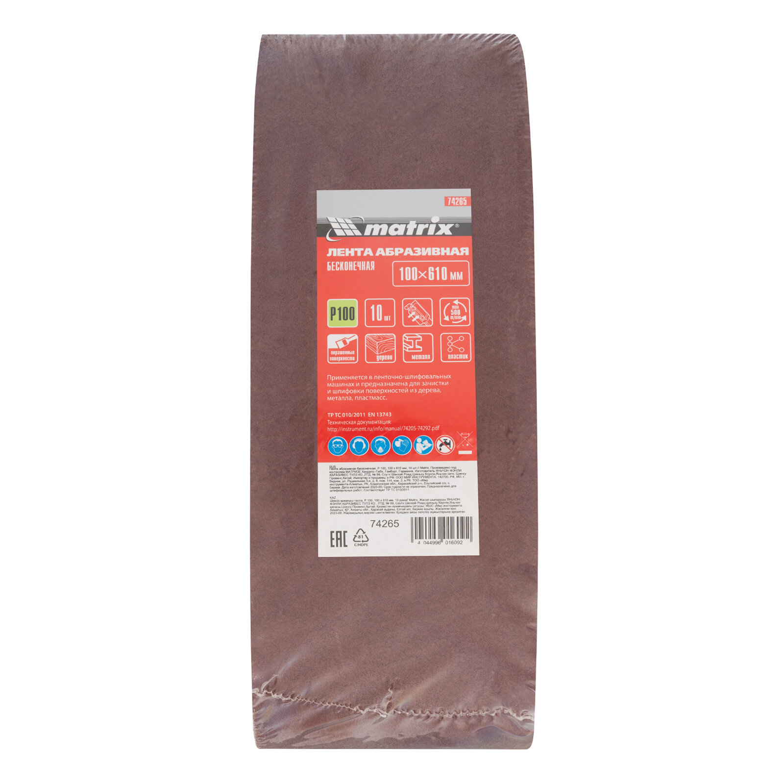 Лента абразивная бесконечная, P 100, 100 х 610 мм, 10 шт Matrix интересное: