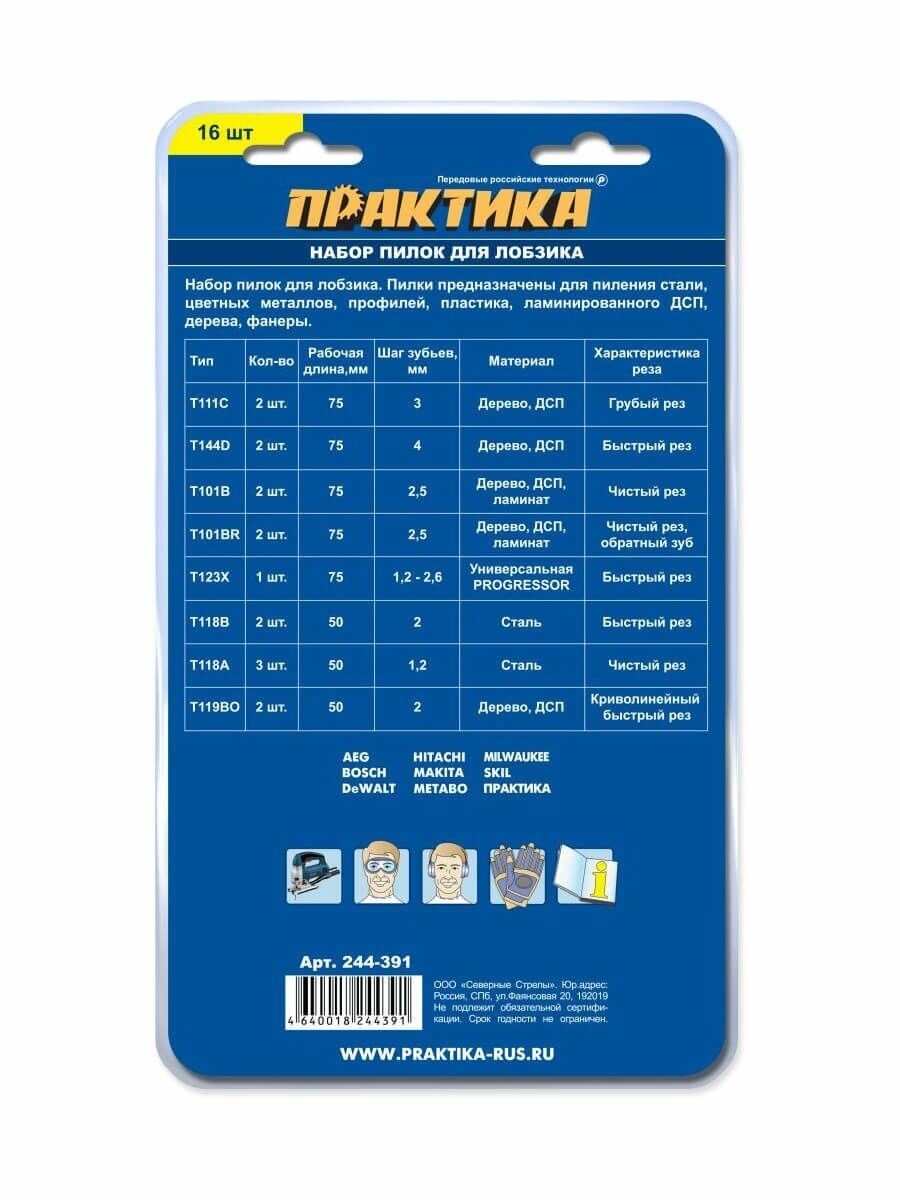 Набор пилок для лобзика ПРАКТИКА 16 шт, универсальный, 8 видов (244-391) интересное: