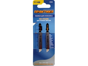 Полотно пильное для лобзика по стали ПРАКТИКА тип T118B 76 х 50 мм, быстрый рез, HSS (2шт.)
