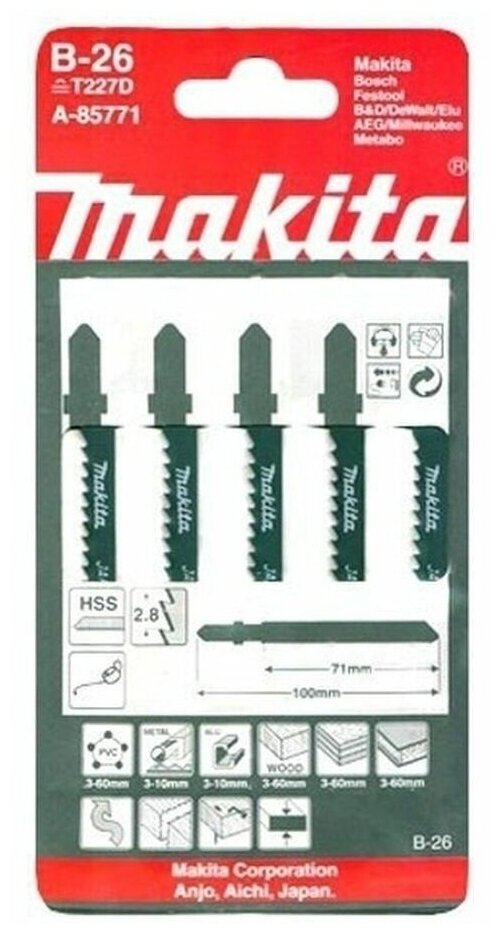 Пилки для лобзика MAKITA A-85771, 5шт. B-26, T227D универсальные