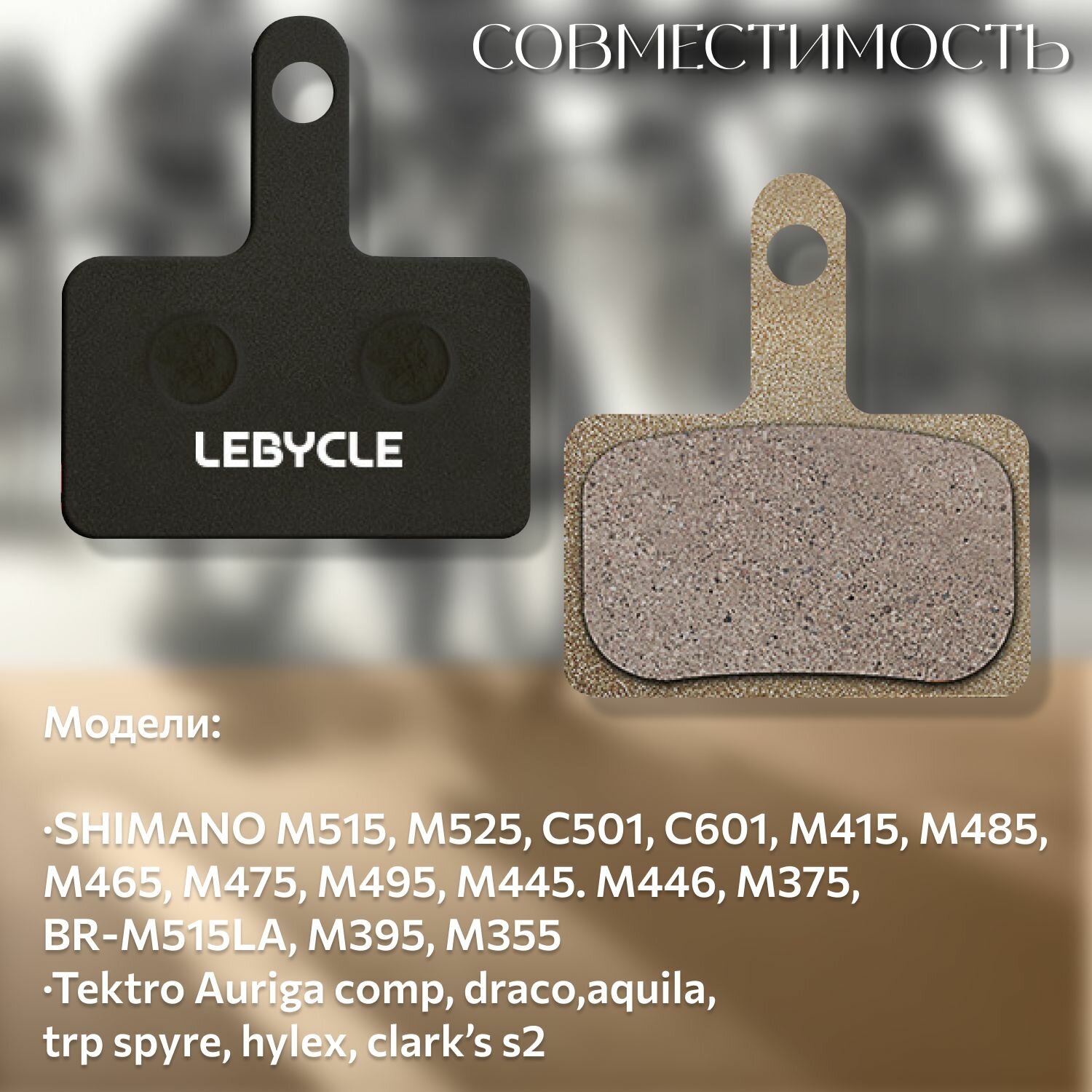 Колодки тормозные для велосипеда дисковые LEBYCLE 2 пары / велосипедные колодки для Shimano, Tektro, TPR, Yokamura Raptor / совместимы с гидравлическими тормозами электросамоката