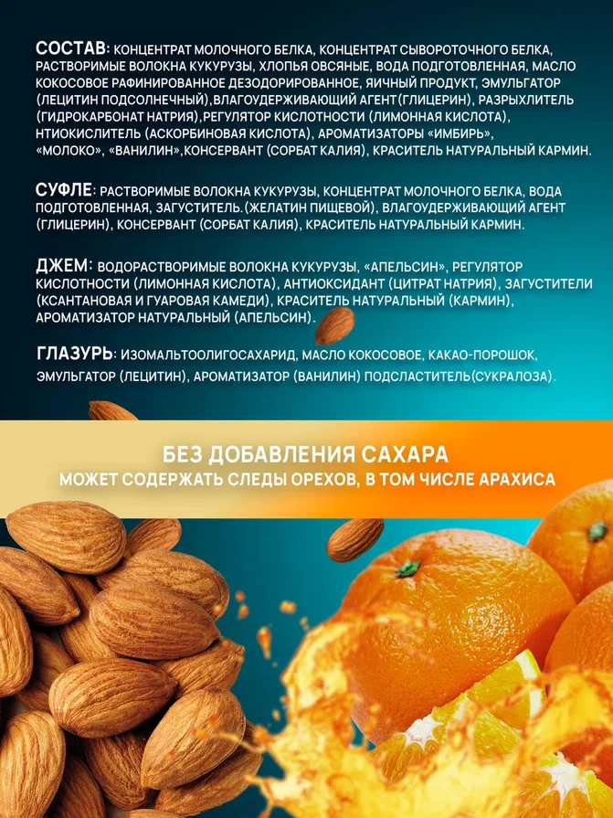 СохранитьПротеиновое печенье ё|батон с белковым суфле миндаль-апельсин 4 шт по 50 г интересное:
