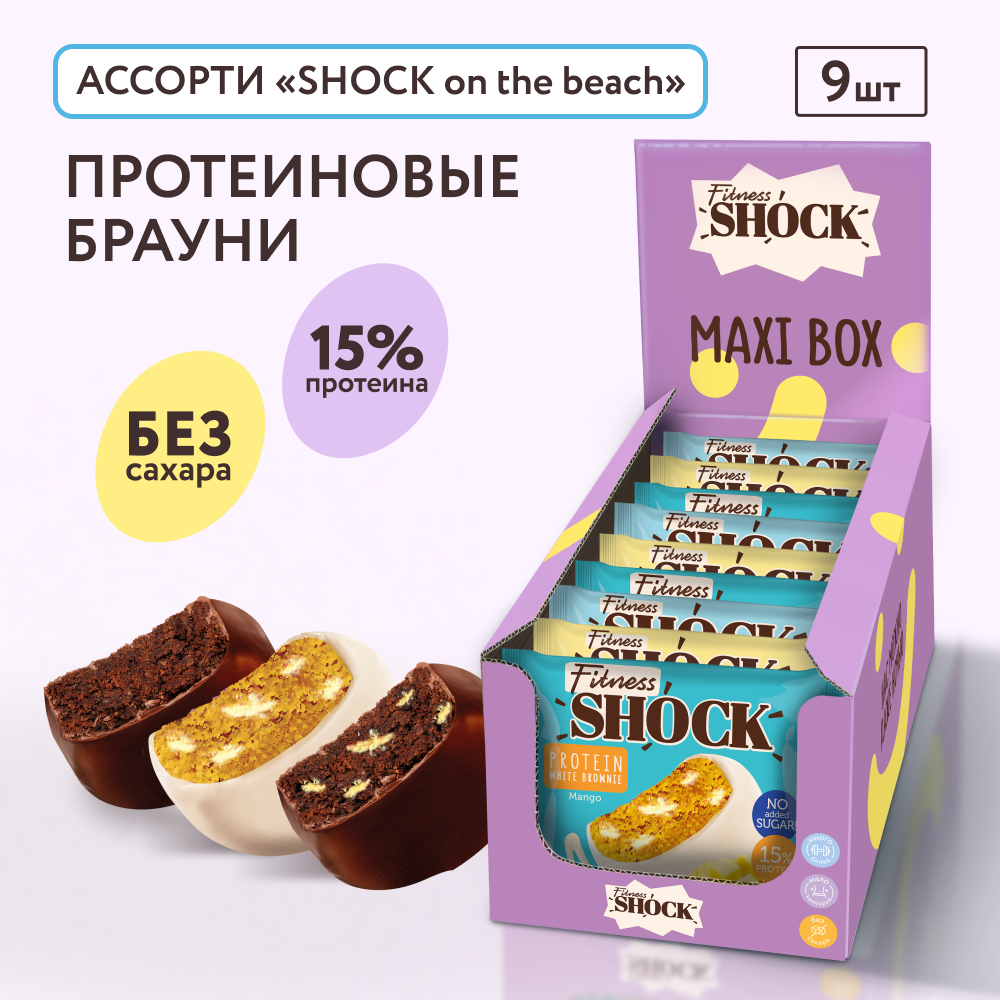 Протеиновое печенье без сахара брауни FitnesSHOCK Ассорти «SHOCK on the beach», 3 вкуса, 50гр, 9 шт интересное: