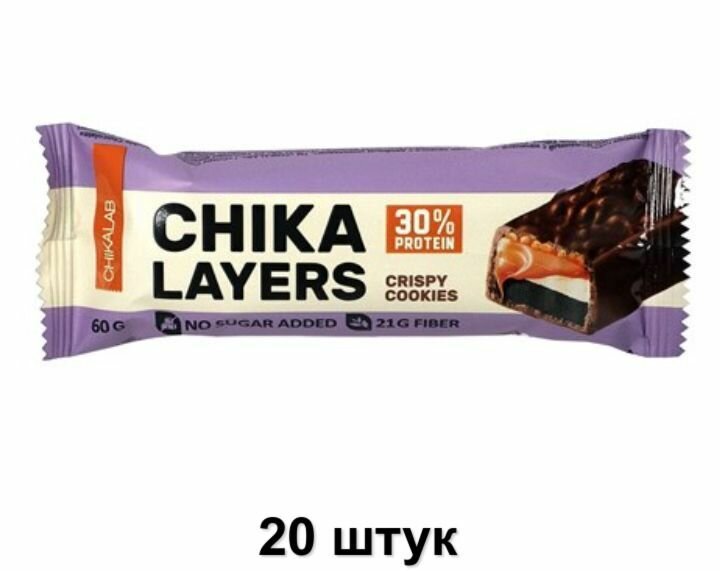 Купить Батончик протеиновый Chikalab Chika Layers Crispy Cookies, 60г х 20 шт