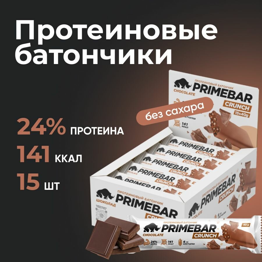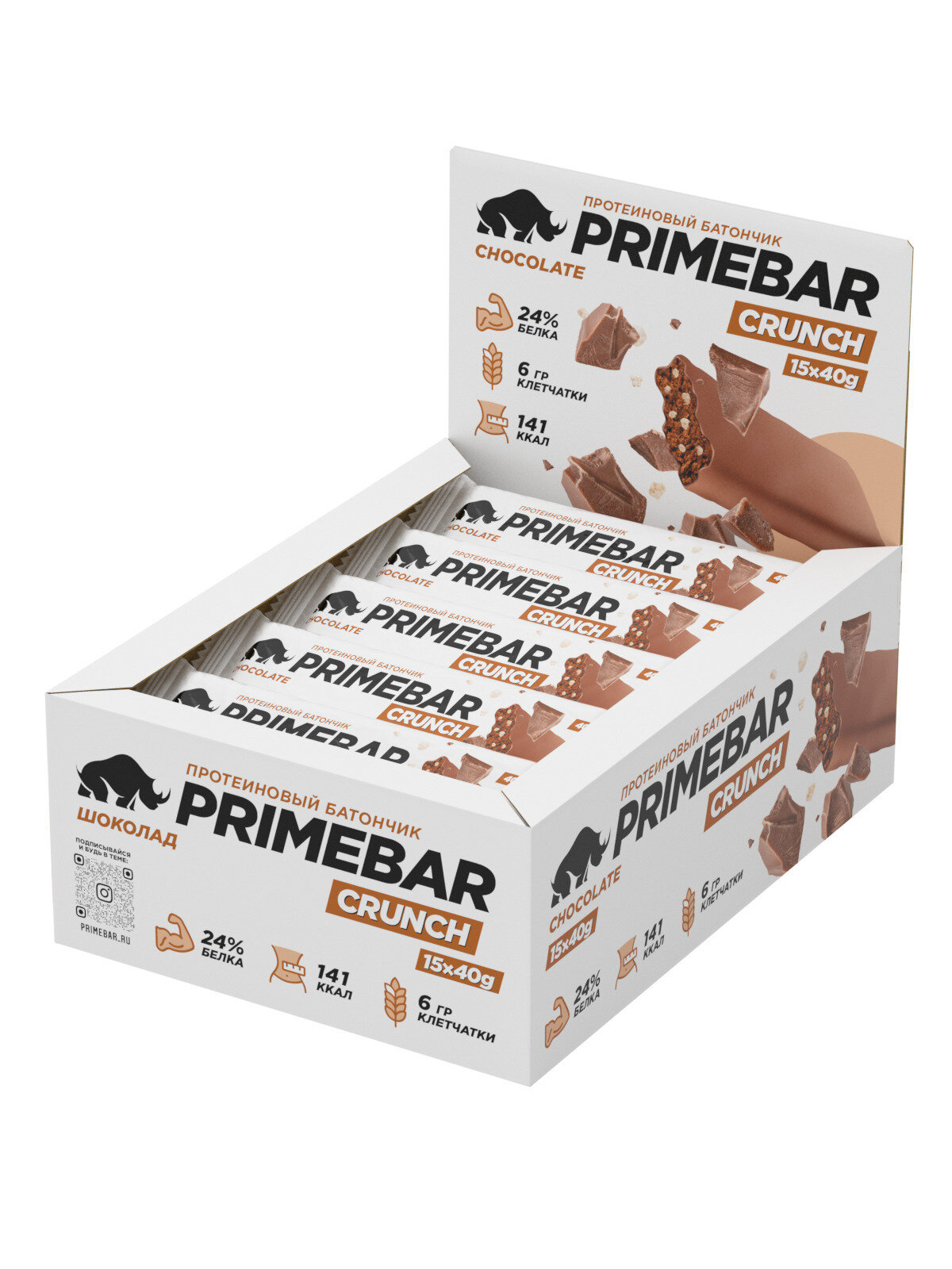 Купить Протеиновые батончики 15 шт по 40 гр, без сахара, PrimeKraft PrimeBar Crunch, вкус: шоколад