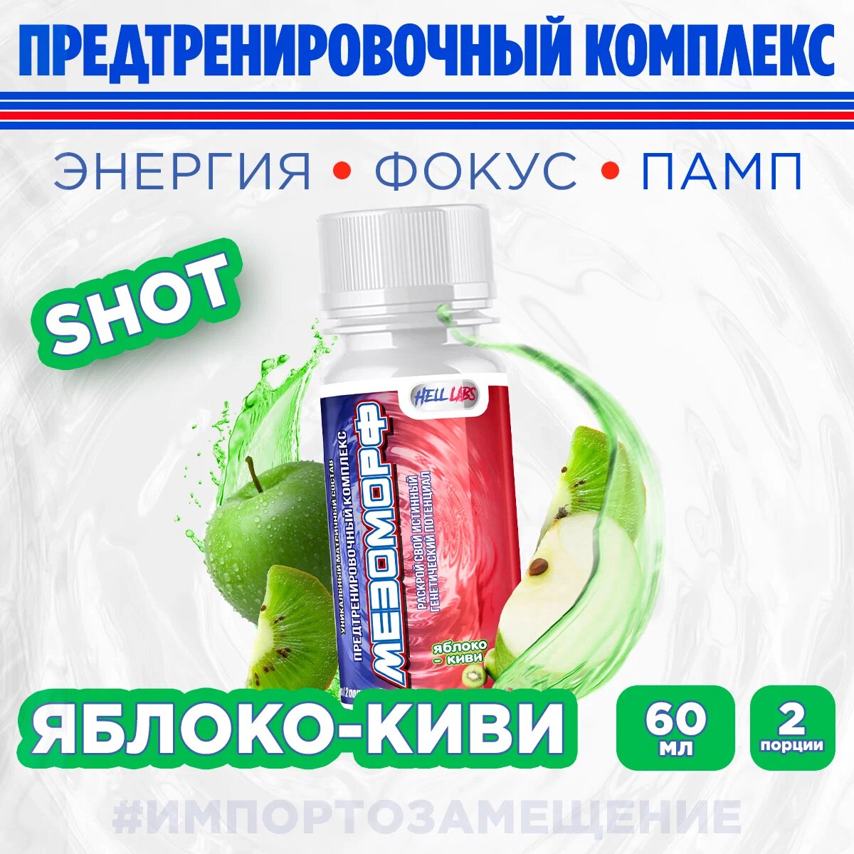 (6 шотов) "Hell Labs" - Мезоморф Предтреник 60мл (Яблоко-Киви)