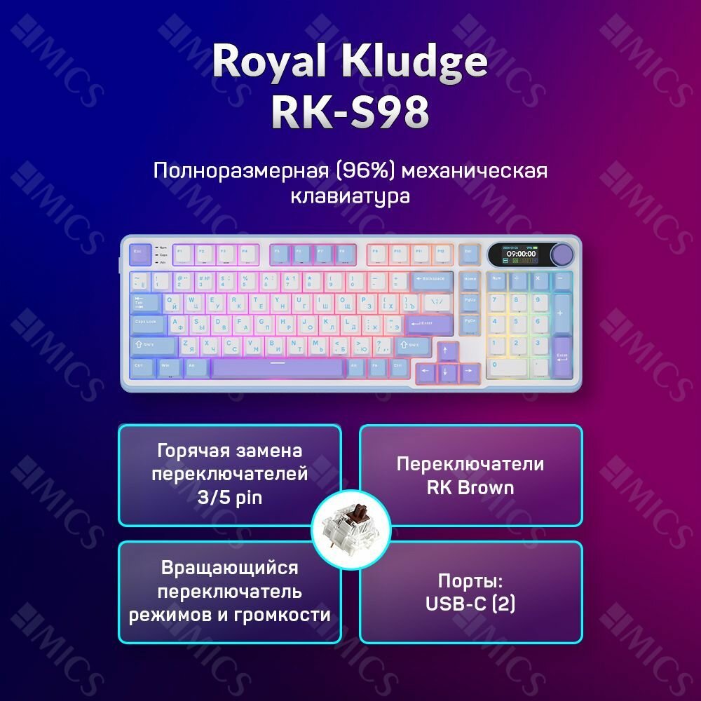 Купить Беспроводная механическая клавиатура Royal Kludge RK-S98 (96%) цвет Taro Milk, RGB, Hot Swap, тактильные свитчи (RK Brown)